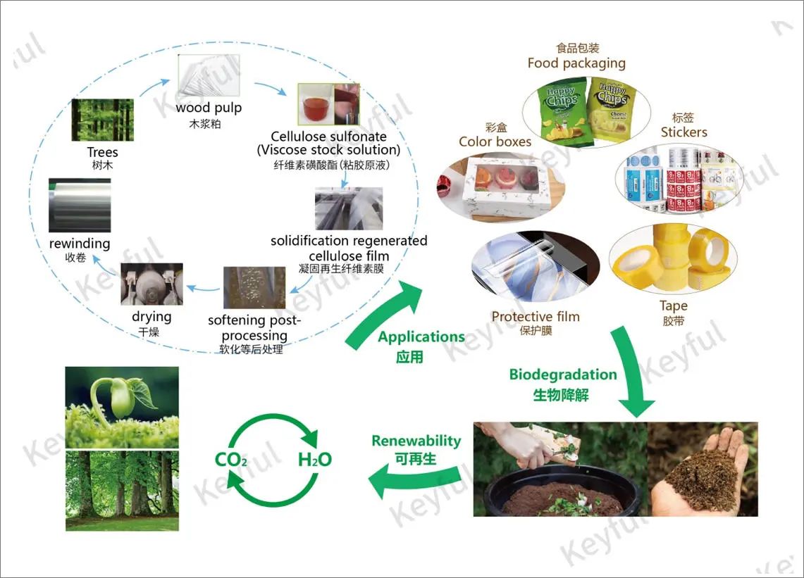 核心技術(shù):采用納米級表面處理技術(shù),實現(xiàn)高透明、高阻隔、無靜電性能,厚度可定制(20-40um),在家庭/工業(yè)堆肥條件下12個月內(nèi)降解能力,完全降解,降解產(chǎn)物為有機質(zhì),無二次污染。