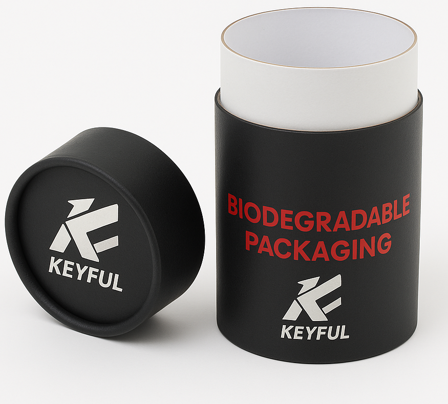 將可降解材料融入紙質圓筒包裝,不僅有助于環境保護,還能提升品牌價值。如今,消費者越來越傾向于選擇可持續的解決方案,而借助Keyful的專業支持,品牌可以: